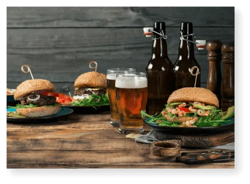 Abbiamo una selezione di oltre 50 tra panini, piadine, hamburger, toast e club sandwich che risponderanno al tuo bisogno di mangiare da noi ;)